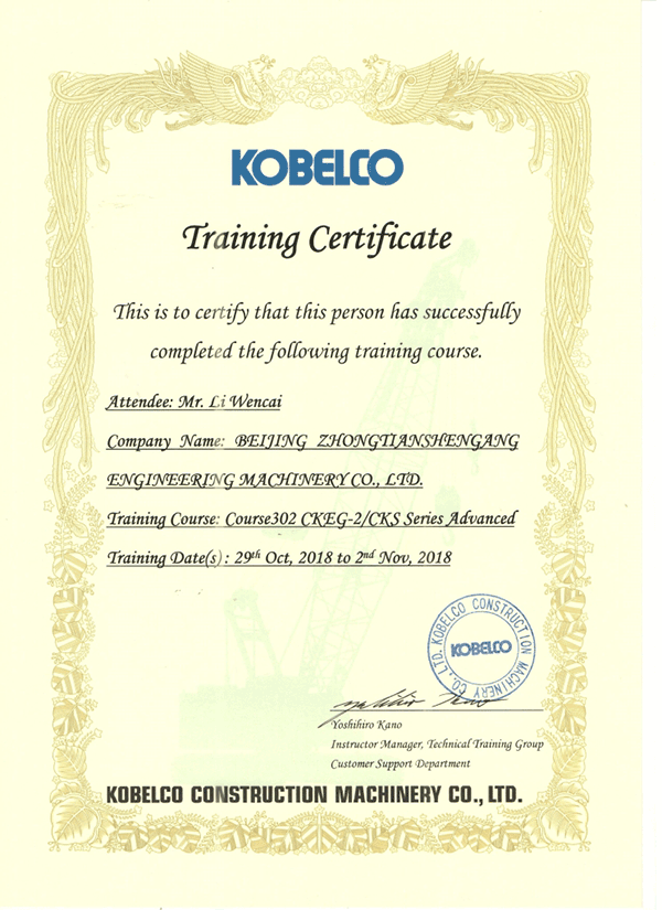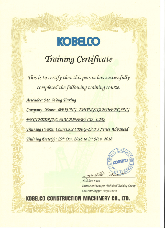 我公司的技術(shù)人員專業(yè)從事進(jìn)口吊車的維修和服務(wù)工作多年,有著扎實(shí)的理論基礎(chǔ)和豐富的實(shí)踐經(jīng)驗(yàn),并多次與國(guó)外的技術(shù)管理人員合作,得到他們的充分肯定。我公司工程師均接受過日本神鋼建機(jī)株式會(huì)社的技術(shù)培訓(xùn)高級(jí)課程,并以優(yōu)異成績(jī)獲得神鋼認(rèn)證的工程師證書。